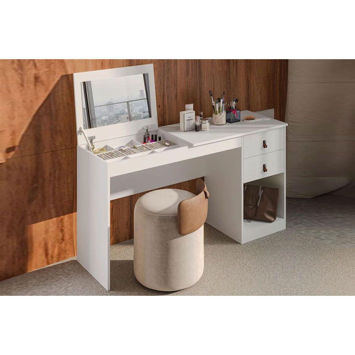- Penteadeira Infantil Versa Home C/ Espelho E 2 Gavetas Branco - Telasul