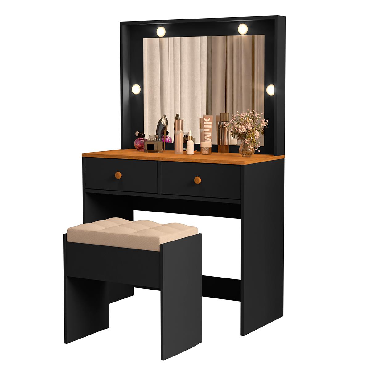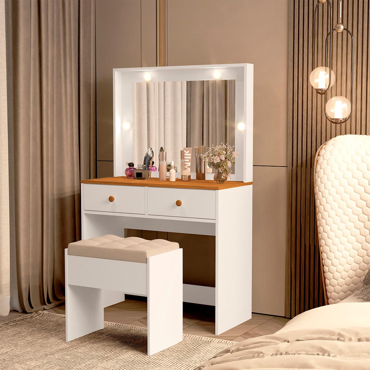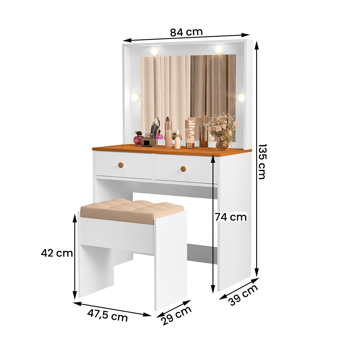 - Penteadeira Livia Com 2 Gavetas Luz De Led E Banqueta Branco/nature