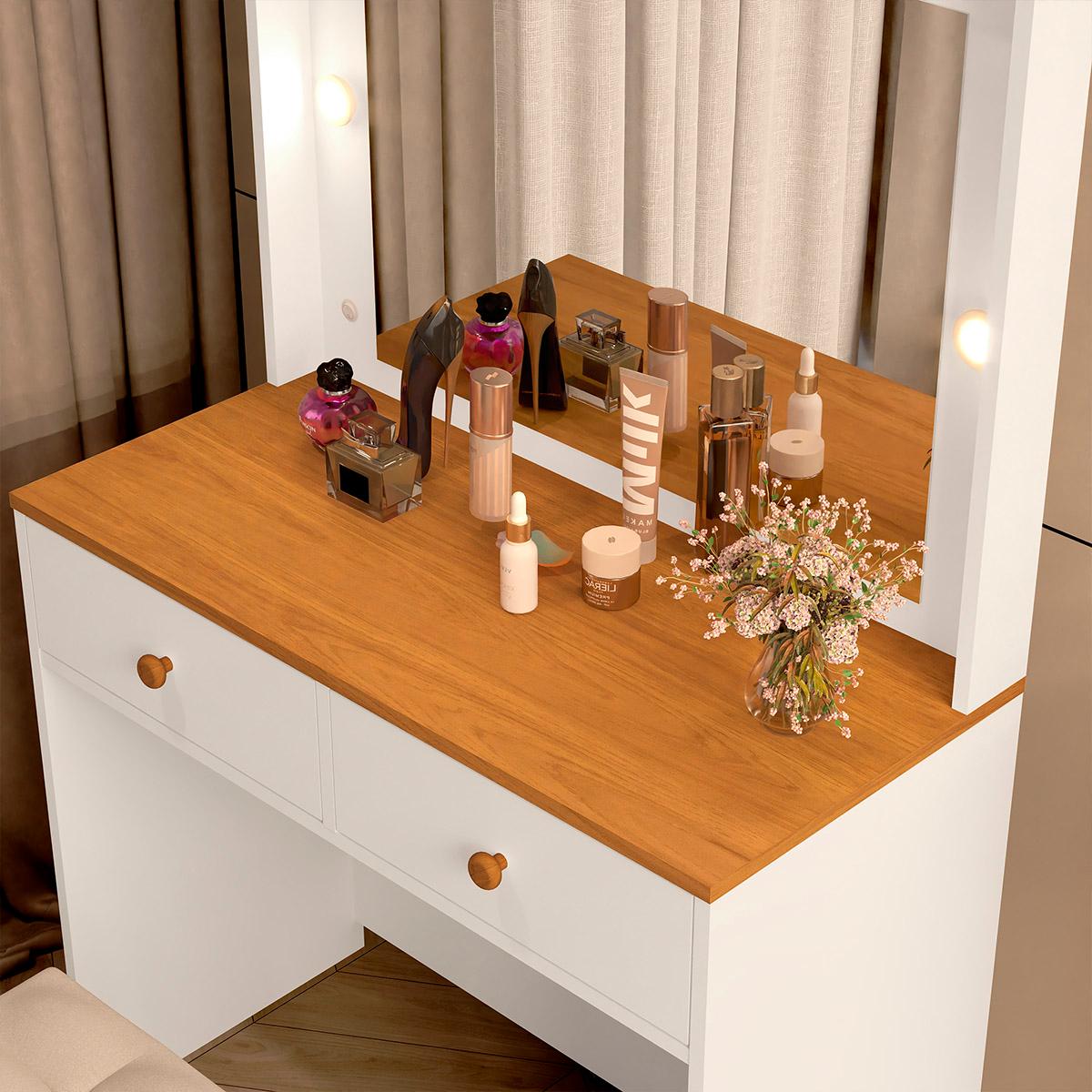 Penteadeira Livia Com 2 Gavetas Luz De Led E Banqueta Branco/nature