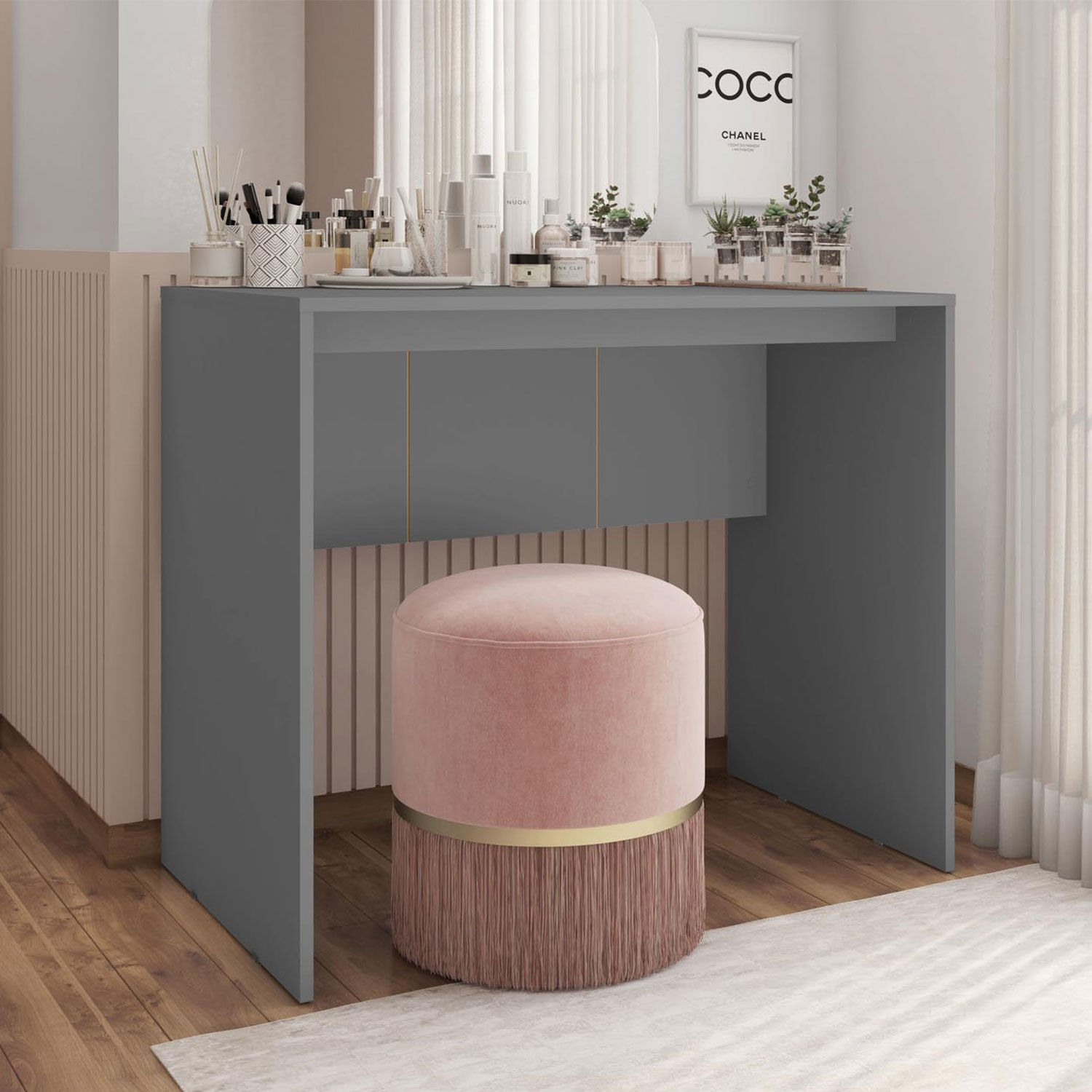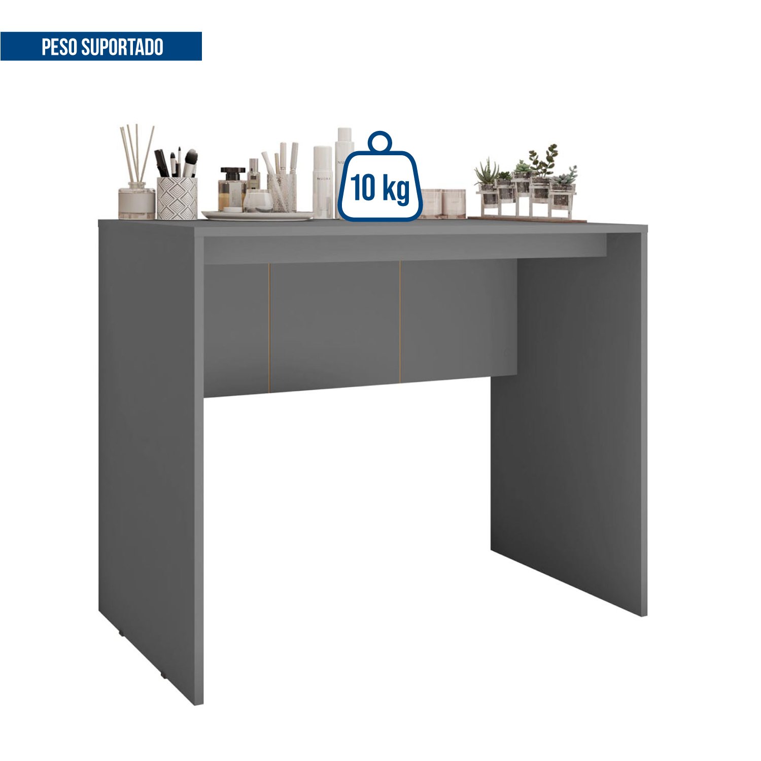 Estilo: Moderno | Peso (kg): 16.66 | Garantia: 03 Meses | Altura (cm): 76 | Acabamento: Bp | Largura (cm): 90 | Possui Pés: Não | Possui Portas: Não | Pés Reguláveis: Não | Possui Gavetas: Não | Possui Moldura: Não | Suporta Até (kg): 25 | Possui Espelhos: Não | Profundidade (cm): 54 | Escala De Brilho: Fosco | Serviço Montagem: 114259443 | Tampo Basculante: Não | Origem Do Produto: Nacional | Possui Iluminação: Não | Acompanha Banqueta: Não | Ambiente Principal: Quarto | Material Principal: Mdp | Possui Prateleiras: Não | Sapatas Niveladoras: Não | Possui Porta Objetos: Não | Fabricante: Caemmun | Marca: Caemmun | Tonalidade: Cinza Cinza | Cor Do Produto: Cinza | Itens Inclusos: 1 Penteadeira, Kit Ferragens E Manual De Montagem. | Cor Predominante: Cinza