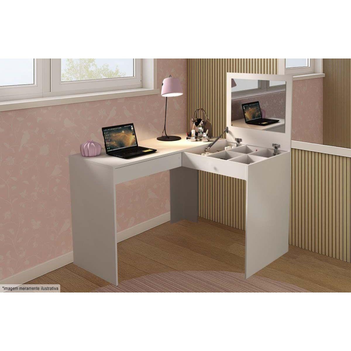 - Penteadeira Pe-2020 C/ 1 Gaveta E 1 Espelho Branco - Tecno Mobili