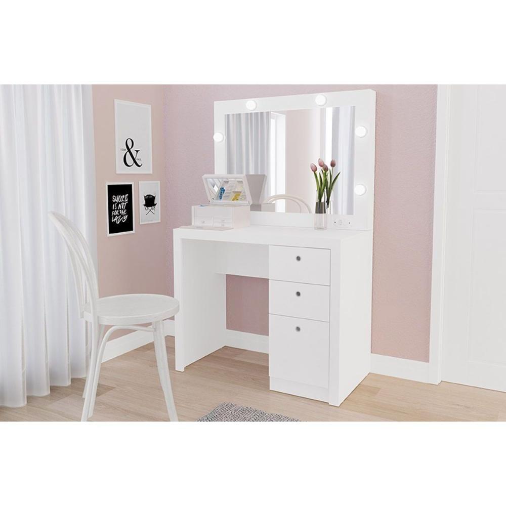 - Penteadeira Pe-2010 C/ 3 Gavetas E Espelho Branco - Tecno Mobili
