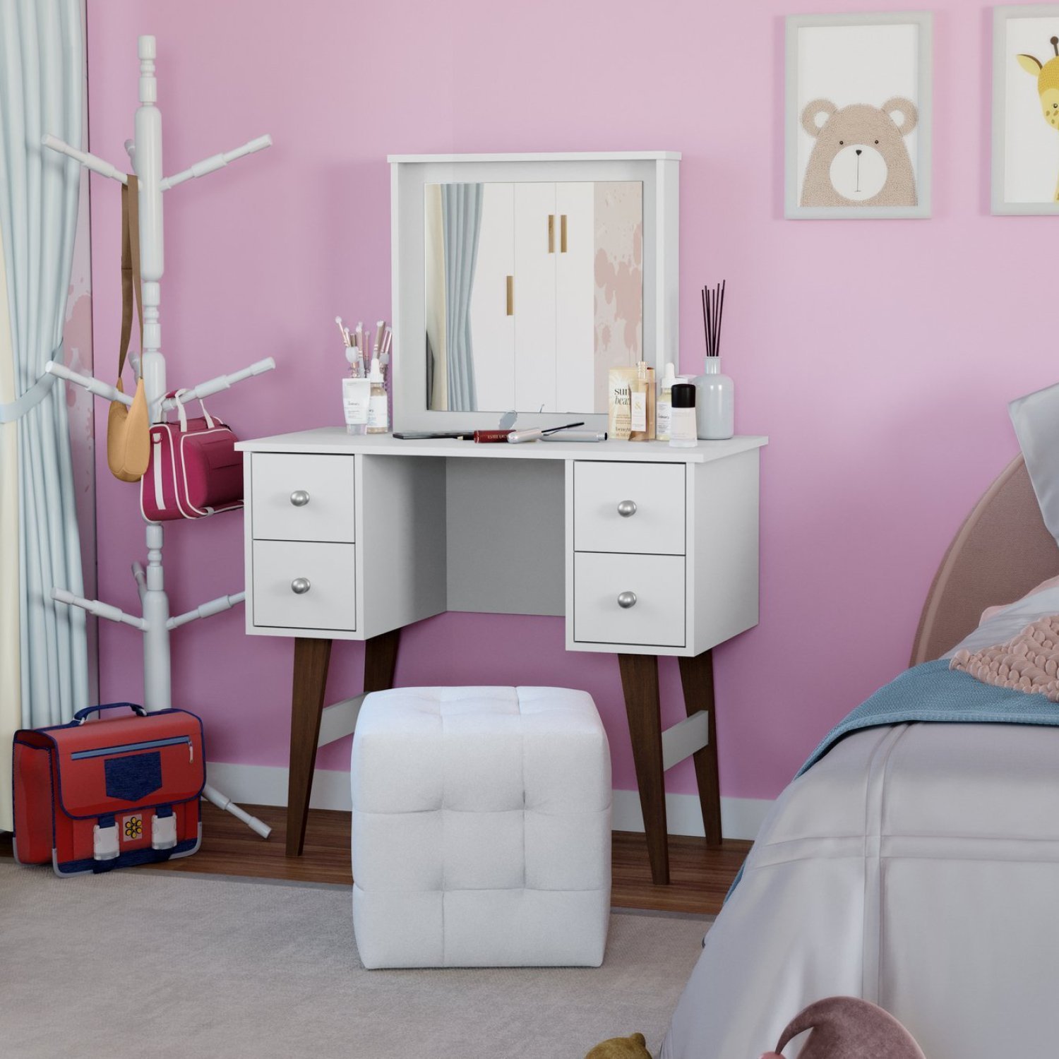 A Penteadeira Retrô Mb 1009 Da Movelbento, É Uma Ótima Opção, Possui 4 Pés Em Madeira Maciça, Um Amplo Espelho, Além De 4 Gavetas. Compacto E Extremamente Funcional, É Ideal Para O Quarto Das Crianças.