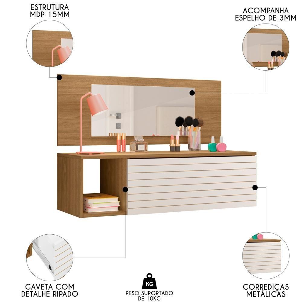 - Penteadeira Suspensa Com Painel E Espelho Joy P14 Nature/branco - Mpozenato