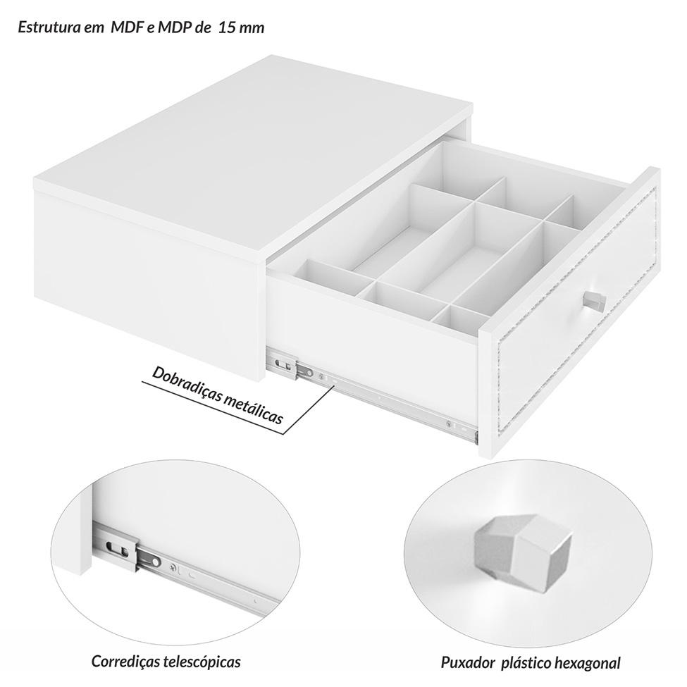 Penteadeira Suspensa Strass 1 Gaveta Branca 50 Cm