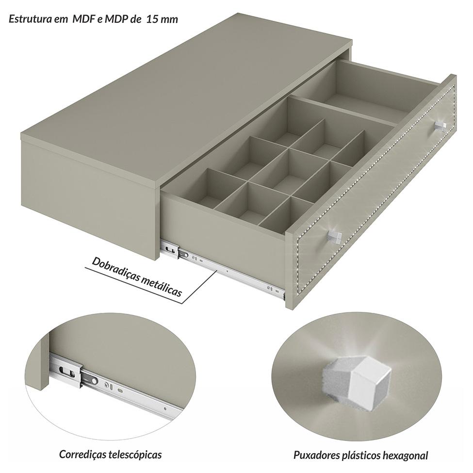Penteadeira Suspensa Strass 1 Gaveta Off White 80 Cm
