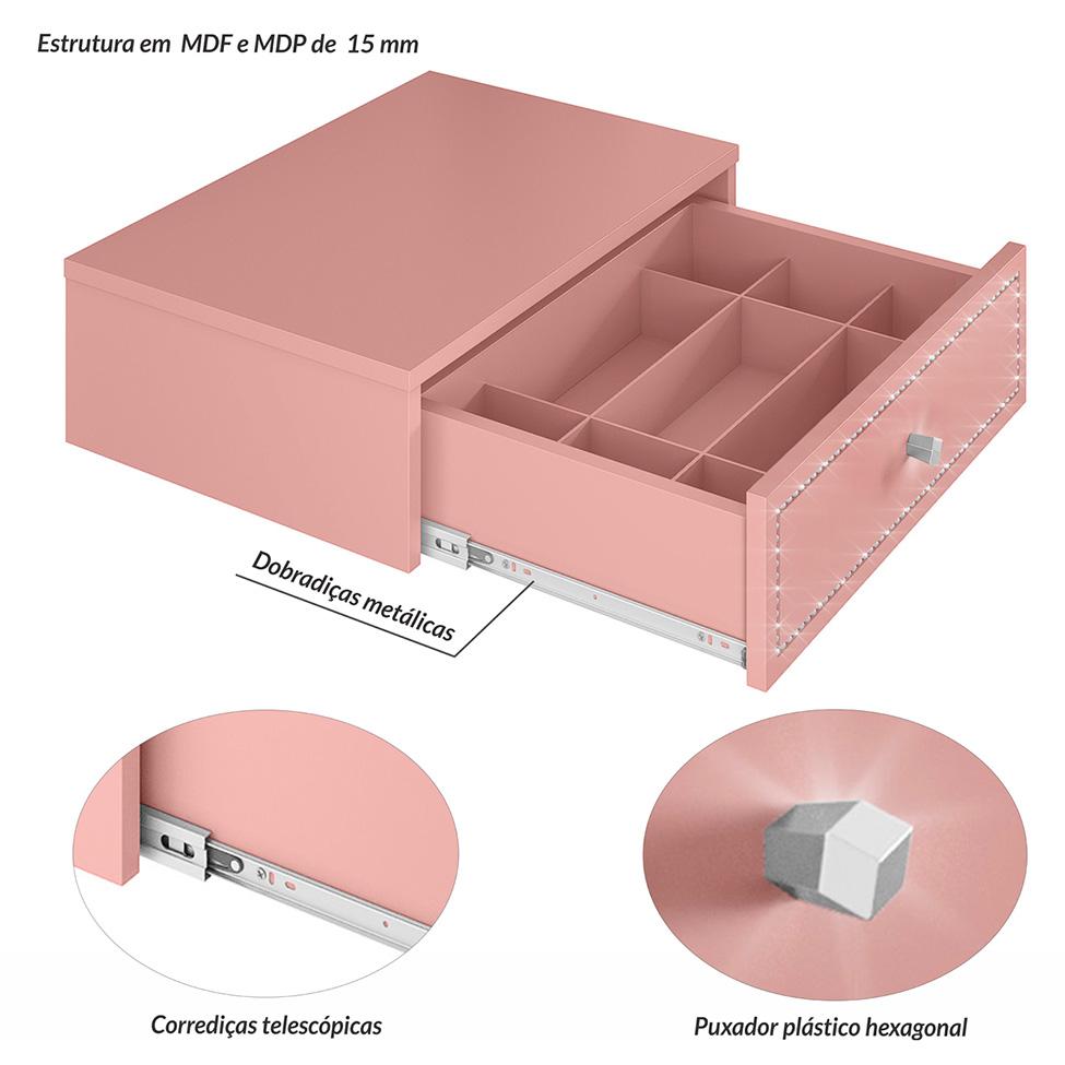 Penteadeira Suspensa Strass 1 Gaveta Rosê 50 Cm