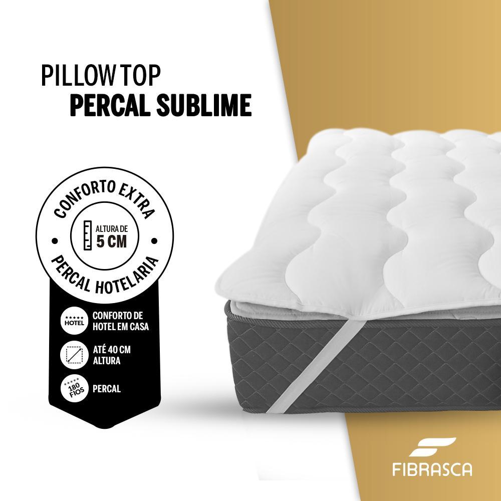 O Pillow Top Percal Sublime Fibrasca Foi Desenvolvido Para Trazer O Conforto Do Colchão De Hotel Para Casa. Com O Revestimento Superior Em Percal 180 Fios Tipo Hotelaria, 65% Algodão E 35% Poliéster, Traz Um Frescor E Durabilidade Maior Devido A Tecelagem Plana Feita Neste Tecido. E A Parte Inferior Em Microfibra Peletizada Com Acabamento Em Matelassê Oferecendo Muito Mais Conforto E Suavidade Ao Toque Podendo Usar O Produto Dos Dois Lados. O Pillow Top Percal Sublime Fibrasca Tem 5cm De Altura E Possui Alças Ajustáveis Para Colchões Com Até 40cm De Altura É O Produto Ideal Para Quem Busca Maciez E Suavidade Na Hora Do Descanso.