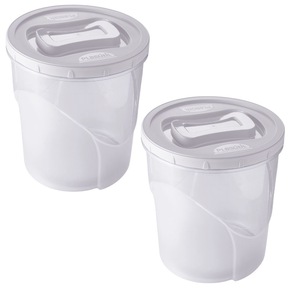 Pote De Plástico Clic Rosca 7,6 Litros Branco Com 2 Unidades Plasutil Ref.2836