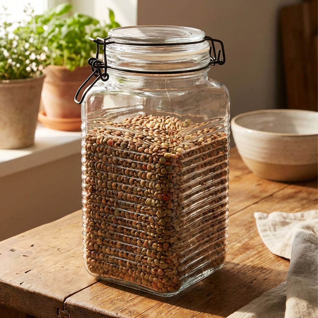 Mantenha seus alimentos sempre frescos e organizados com este pote hermético de vidro, ideal para armazenar mantimentos do dia a dia com praticidade e estilo!