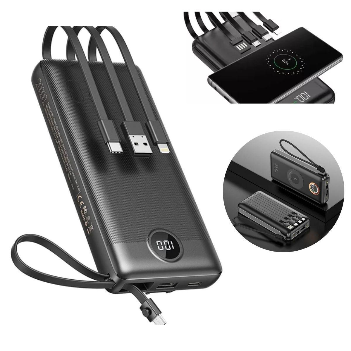 - 1 Power Bank 10000mah, Com 2 Cabos E 3 Saídas Distintas