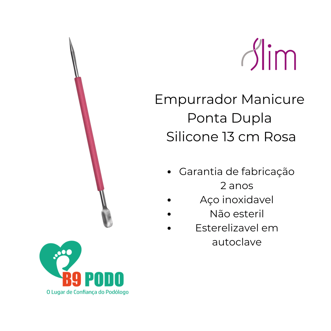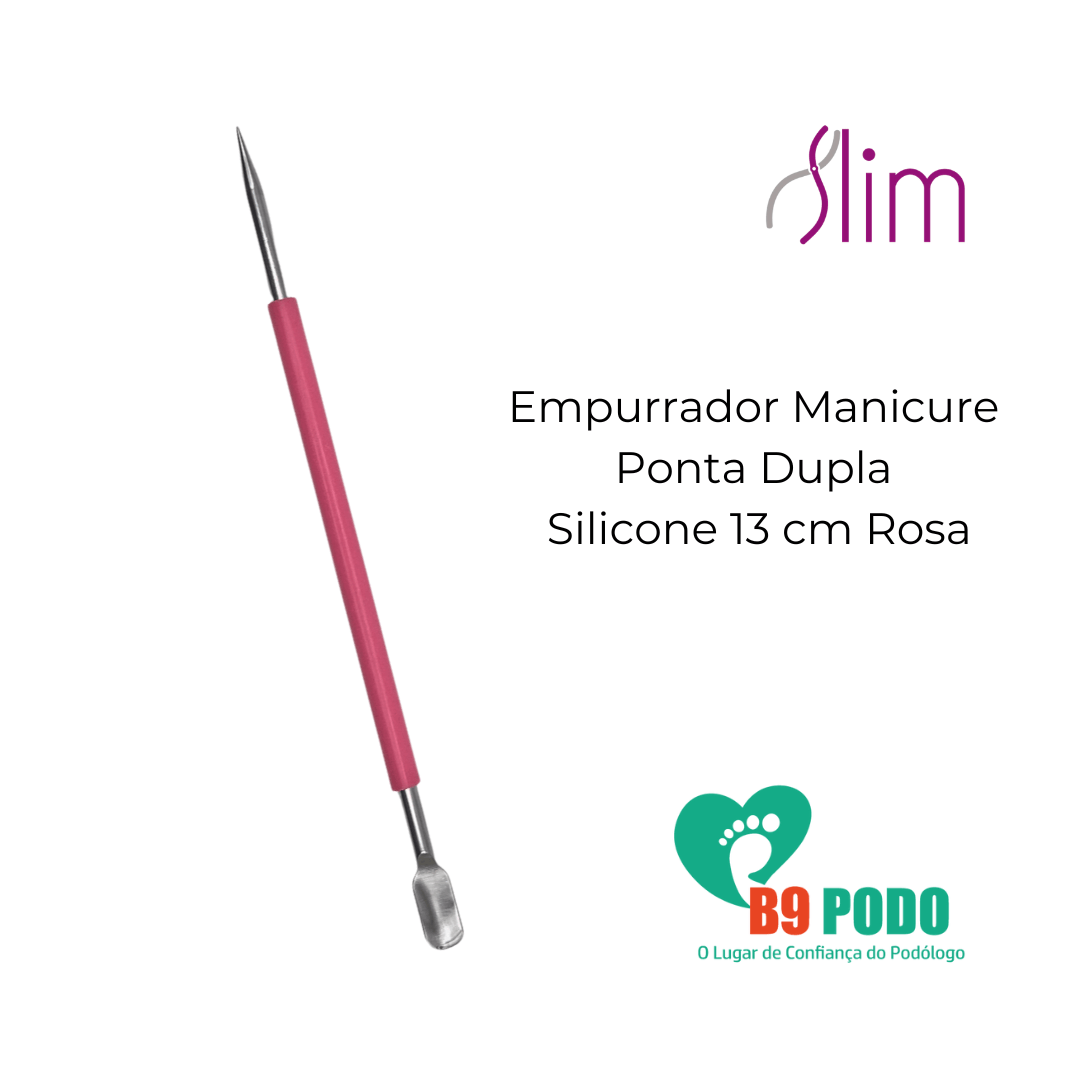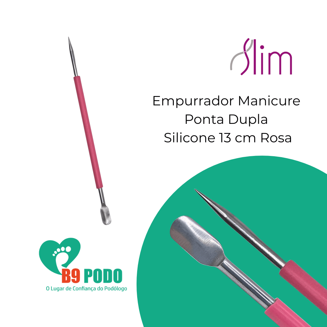 Palito De Esmalte E Empurrador De Cutícula Slim – Cabo Em Silicone O Palito De Esmalte E Empurrador De Cutícula Slim É Um Instrumento De Manicure 2 Em 1, Desenvolvido Para Oferecer Precisão, Praticidade E Conforto No Cuidado Das Unhas. Conta Com Cabo Em Silicone Slim, Que Garante Pegada Firme E Antiderrapante, Ideal Para Uso Profissional Ou Pessoal. Especificações Técnicas:• marca: Slim• modelo: Palito De Esmalte E Empurrador De Cutícula• material: Aço Inoxidável • material Do Cabo: Silicone Antiderrapante• comprimento Total Do Cabo: 13 Cm• largura Do Cabo: 4 Mm• parte Ativa (palito De Esmalte): 8 Mm• parte Ativa (empurrador De Cutícula): 6 Mm, Com Cabeça Curva• cor: Rosa• quantidade: 1 Unidade Por Embalagem• esterilizável Em Autoclavediferenciais Do Produto:• design Funcional Com Duas Pontas: Palito De Esmalte E Empurrador De Cutícula.• cabo Ergonômico Em Silicone Que Oferece Conforto E Firmeza Durante O Uso.• praticidade Para Aplicação E Limpeza De Esmalte, Além De Empurrar Cutículas Suavemente.• instrumento Compacto, Leve E De Fácil Higienização.produto Ideal Para Manicures, Salões De Beleza Ou Cuidados Pessoais No Dia A Dia, Garantindo Resultados Precisos E Acabamento Profissional.