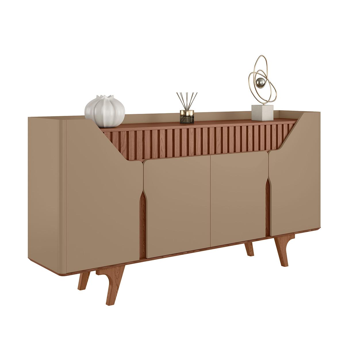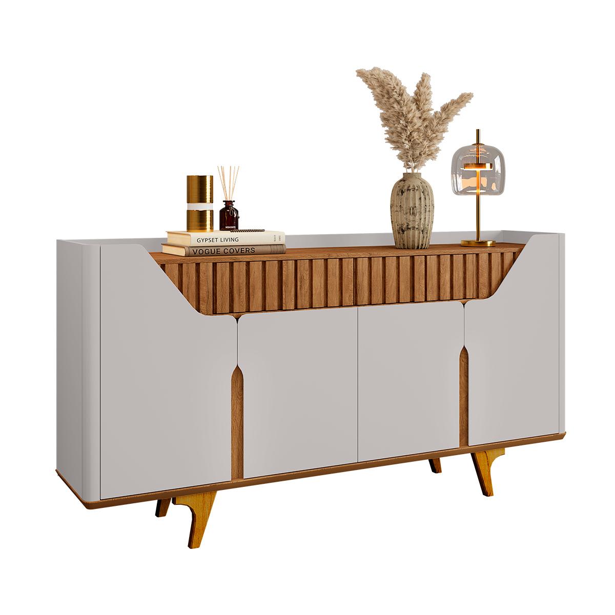 Aparador Buffet Danubio 4 Portas 2 Gavetas Pé Madeira Maciça Off White/naturale