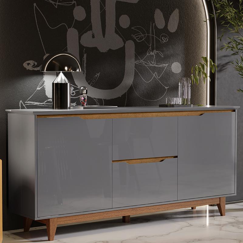 Aparador Buffet Flow 2 Portas 2 Gavetas Pés Madeira Maciça Preto/freijo