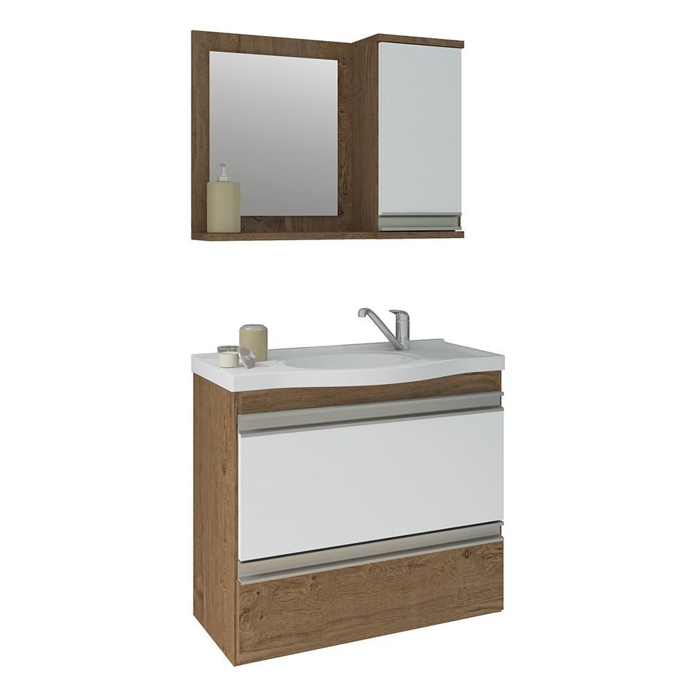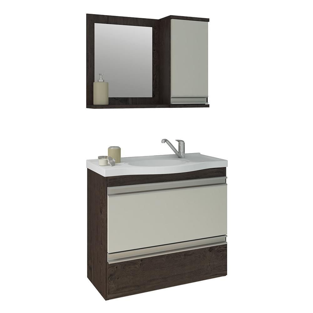 Armário Gabinete Grécia 65cm Amêndoa/off White Para Banheiro Com Cuba E Espelheira - Mgm