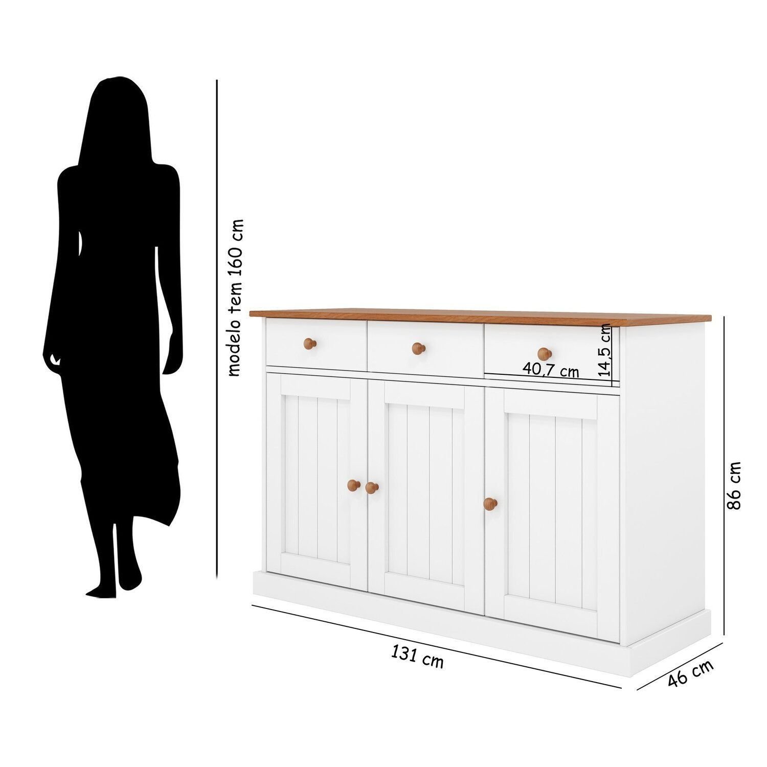 Adicione Um Toque De Charme E Organização À Sua Casa Com Este Buffet Versátil E Robusto. Fabricado Com Madeira Maciça, Ele Oferece Durabilidade, Combinando O Clássico Branco Com O Tampo Na Cor Sépia .