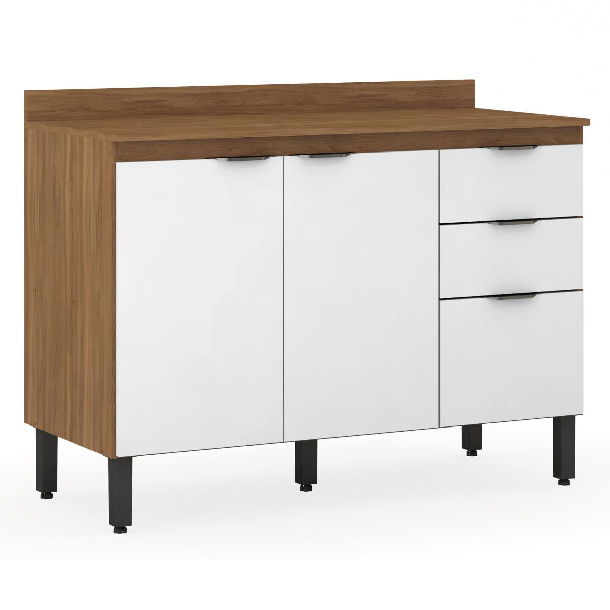 Balcão Cozinha Firenze Com Tampo 120cm E 3 Portas 2 Gavetas Amendola/nude Prime Tx