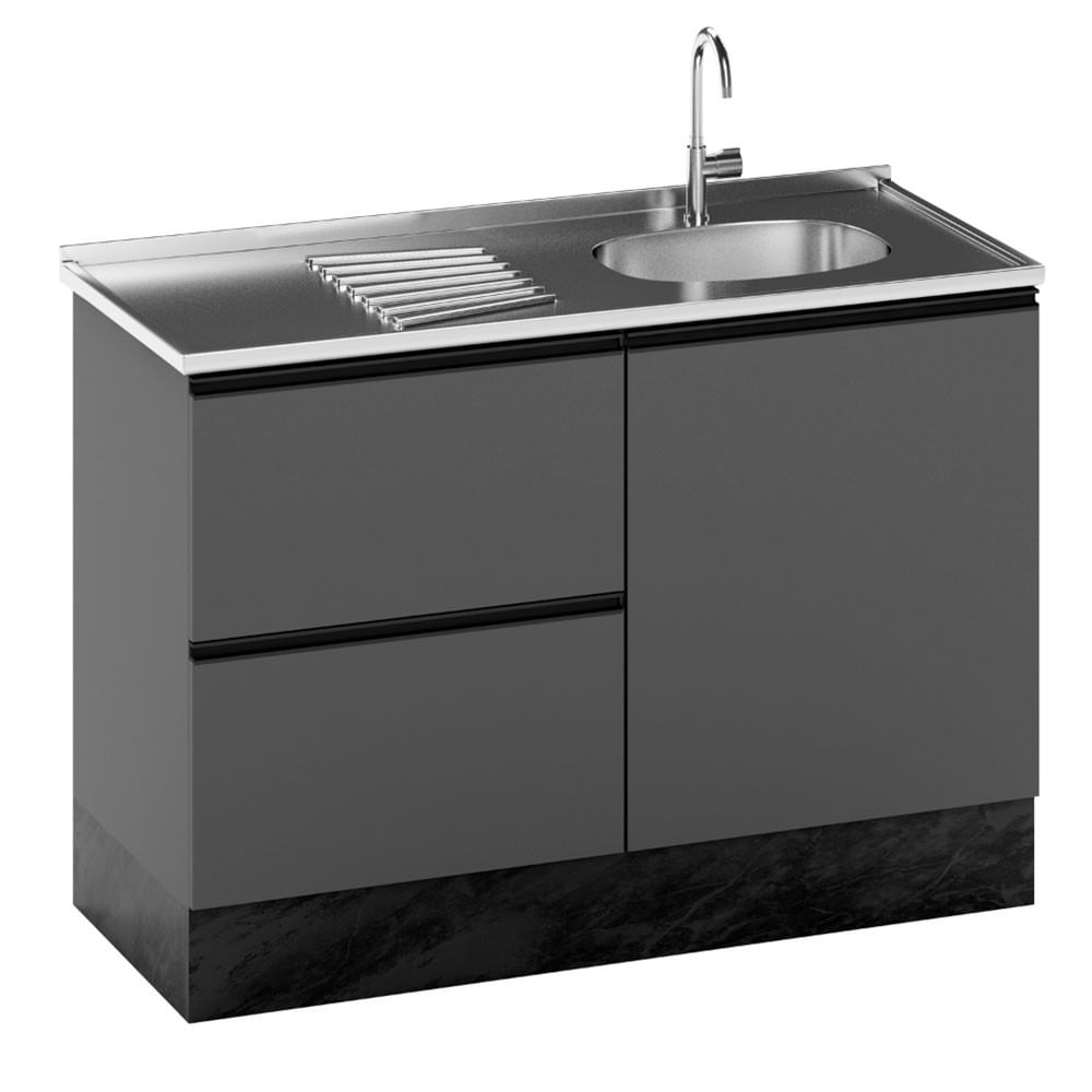 Balcão Etna Para Pia Deslocada Com Porta Talher 1 Porta E 3 Gavetas Poliman Moveis