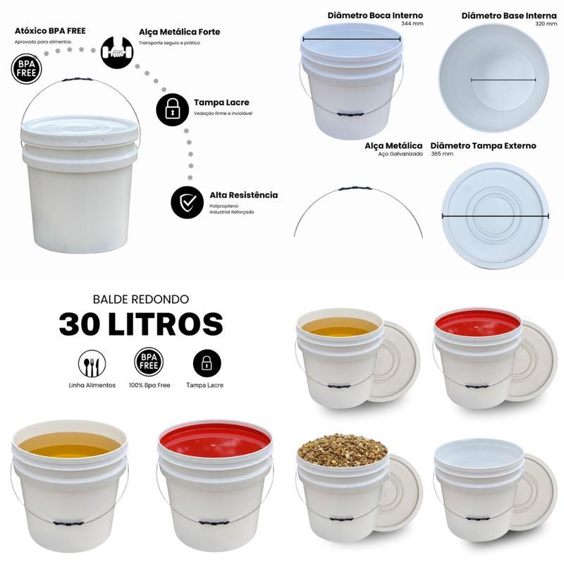 Balde 30 Litros Com Tampa Lacre De Vedação E Alça Metálica