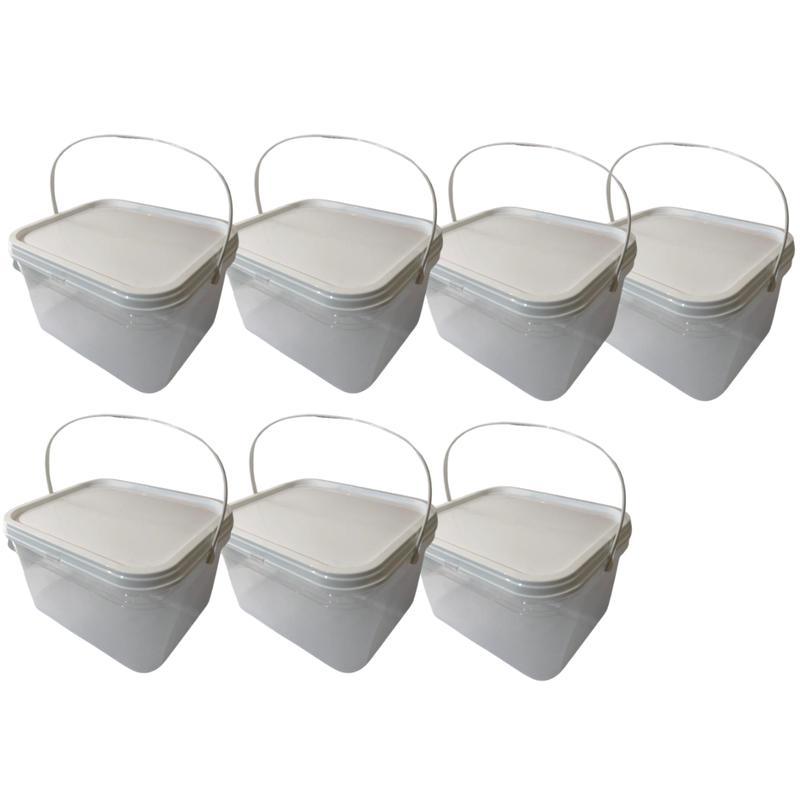 Balde Retangular Transparente 2.4 Litros Com Tampa Lacre De Segurança 100% Bpa Free - Kit 07 Peças Nastripack