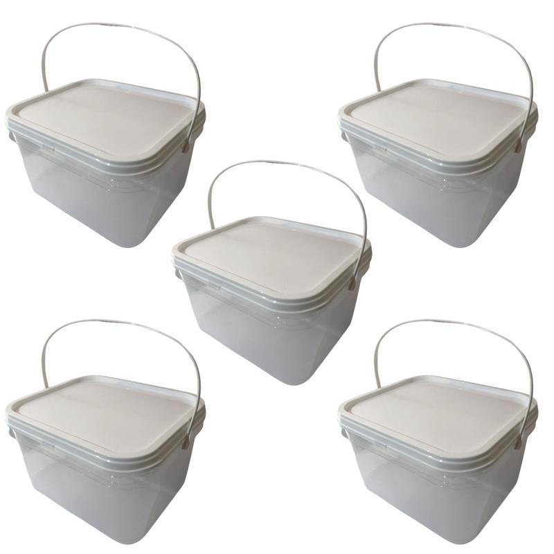 Balde Retangular Transparente 2.4 Litros Com Tampa Lacre De Segurança 100% Bpa Free - Kit 05 Peças Nastripack