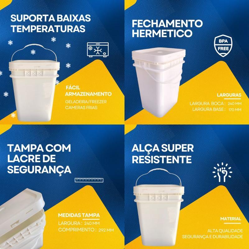 Balde Retangular 20 Litros Com Tampa Lacre De Segurança E Alça Plastica 100% Bpa Free - 10 Peças