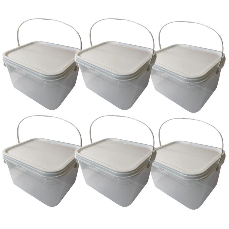 Balde Retangular Transparente 2.4 Litros Com Tampa Lacre De Segurança 100% Bpa Free - Kit 06 Peças Nastripack