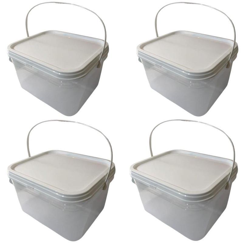 Balde Retangular Transparente 2.4 Litros Com Tampa Lacre De Segurança 100% Bpa Free - Kit 04 Peças Nastripack