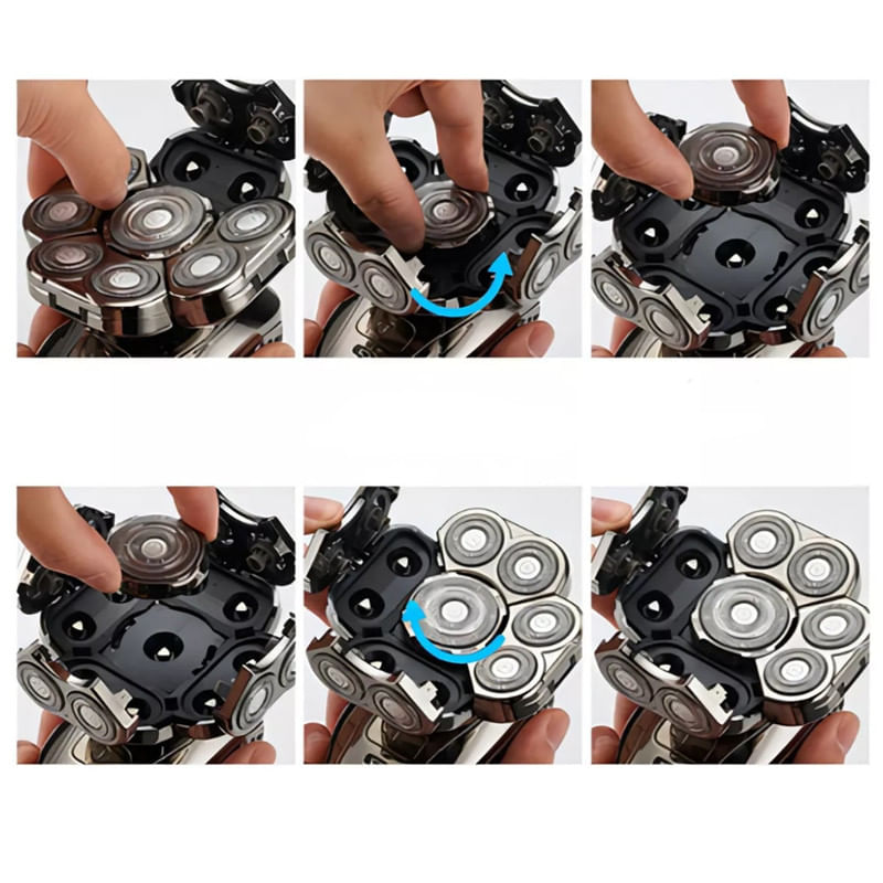 Barbeador De Crânio Com 9 Lâminas Rotativas: Tecnologia E Precisão Ao Seu Alcance Transforme Sua Rotina De Cuidados Pessoais Com O Barbeador De Crânio De 9 Lâminas, Projetado Para Oferecer Um Barbear Impecável, Rápido E Confortável. Com Um Design Inovador E Funcionalidades De Ponta, Este Aparelho É A Escolha Ideal Para Quem Busca Resultados Profissionais Em Casa. Seja Para Manter Um Visual Sempre Barbeado Ou Realizar Retoques Práticos Entre Cortes, Esta Ferramenta É Sinônimo De Eficiência E Qualidade. Cobertura Total Com 9 Lâminas Rotativas A Tecnologia De Múltiplas Lâminas Cobre Uma Área Maior Em Menos Tempo, Garantindo Um Barbear Uniforme E Preciso Em Cada Curva Do Couro Cabeludo. Design Ergonômico E Prático Desenvolvido Para Se Ajustar Confortavelmente À Palma Da Mão, O Barbeador Oferece Controle Total E Facilidade De Uso, Mesmo Nas Áreas Mais Difíceis De Alcançar. Barbear Seco Ou Molhado Totalmente À Prova D'água, Ele Proporciona Versatilidade Para Barbear Com Espuma, No Chuveiro Ou A Seco, Adaptando-se À Sua Preferência. Bateria Recarregável De Alta Capacidade Com Autonomia Prolongada, A Bateria Recarregável É Ideal Para O Uso Diário Ou Em Viagens, Sem Interrupções. Fácil Limpeza E Manutenção As Lâminas Removíveis Podem Ser Facilmente Enxaguadas, Garantindo Praticidade E Higiene. Projetado Para Quem Valoriza Eficiência E Estilo, Este Barbeador Combina Inovação E Conveniência. Ele Se Adapta Às Curvas Naturais Da Cabeça Para Proporcionar Um Barbear Rente E Confortável Com O Mínimo Esforço. Além Disso, Sua Construção Robusta E Design Moderno O Tornam Um Investimento Indispensável Para O Autocuidado. Eleve Seus Cuidados Pessoais Com O Barbeador De Crânio De 9 Lâminas: Um Equipamento Premium Que Une Desempenho, Durabilidade E Praticidade Em Um Só Dispositivo.
