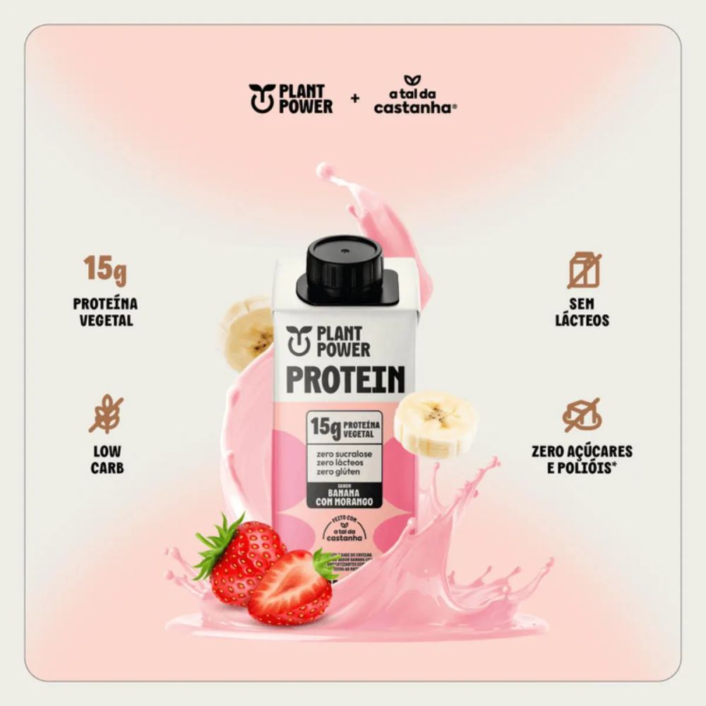 A Bebida Protein Banana e Morango Plant Power 250ml oferece uma solução nutritiva e saborosa para quem busca uma fonte de proteína de origem vegetal.