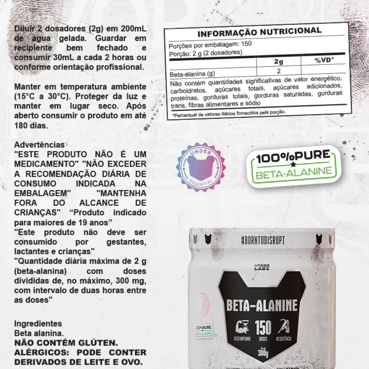 Alanine Borntodisrupt 300g - Underlabz Mais Energia, Mais Desempenho, Menos Preguiça A Beta Alanine Borntodisrupt 300g É Um Suplemento Alimentar Premium, Formulado Com 100% De Beta Alanina Pura - Um Aminoácido Essencial Que Atua Como Precursor Da Carnosina, Substância Fundamental Para Deixar A Preguiça De Lado Durante Os Treinos. Desenvolvida Para Quem Busca Máximo Rendimento, Nossa Beta Alanina Ajuda No Transporte Eficiente De Nutrientes Para Os Músculos, Promovendo Mais Energia E Resistência Em Atividades De Alta Intensidade Como Musculação, Corrida, Ciclismo E Outros Esportes.