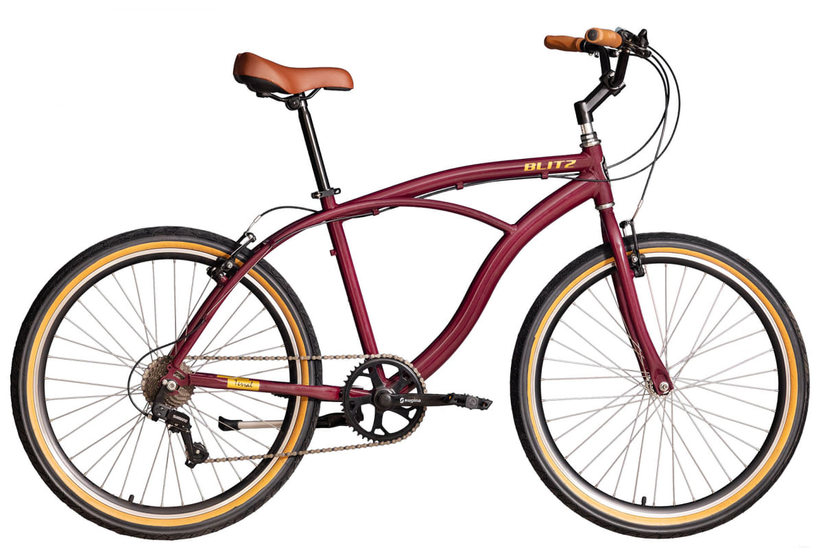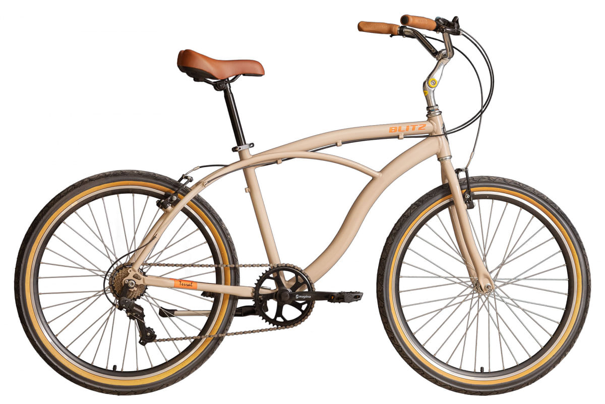 Descrição:Com design único, a BLITZ Terral é uma bike confortável e precisa. Tendo como inspiração as bicicletas beach-cruiser, clássicas da Califórnia, esse modelo é ideal para quem prefere pedalar com a postura ereta pelas praias e centros urbanos. O tom de cor deste modelo traduz a versatilidade de seu uso, oferecendo um padrão clássico para os ciclistas mais discretos.Com quadro em alumínio, guidão curvo, punhos e selim confortáveis, pedais firmes e pneus largos, a BLITZ Terral proporciona estabilidade, suavidade e prazer na hora de pedalar Especificações Técnicas: Quadro | 26´´Alumínio 6061Guidão | CromadoGarfo | Rígido Manete de freios | Manetes de AlumínioFreios | V-BrakeRodas | Aro 26 aero em Alumínio / Pneus 26 1.95 Slick / Raios Aço Inox / Cubos em AlumínioCâmbio | 7VPedal | NylonDescanso | Central Alumínio com regulagemPeso | 13 KgsCarga máxima | 100 KgsGarantia | 1 ano