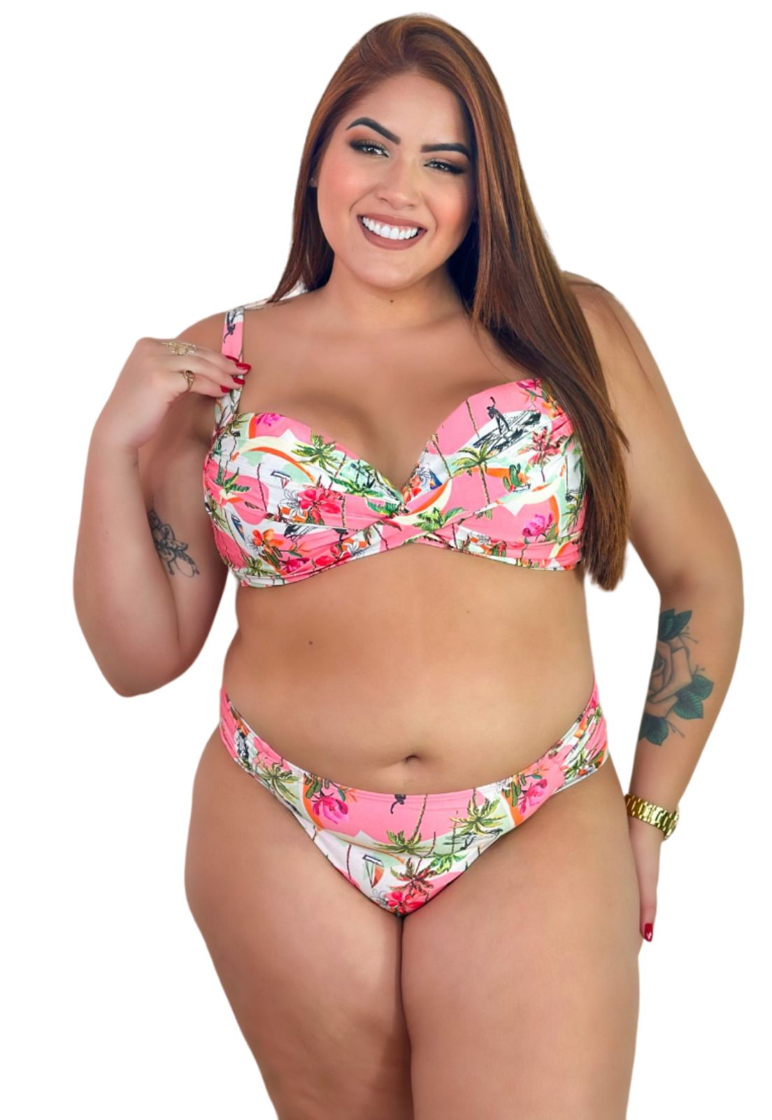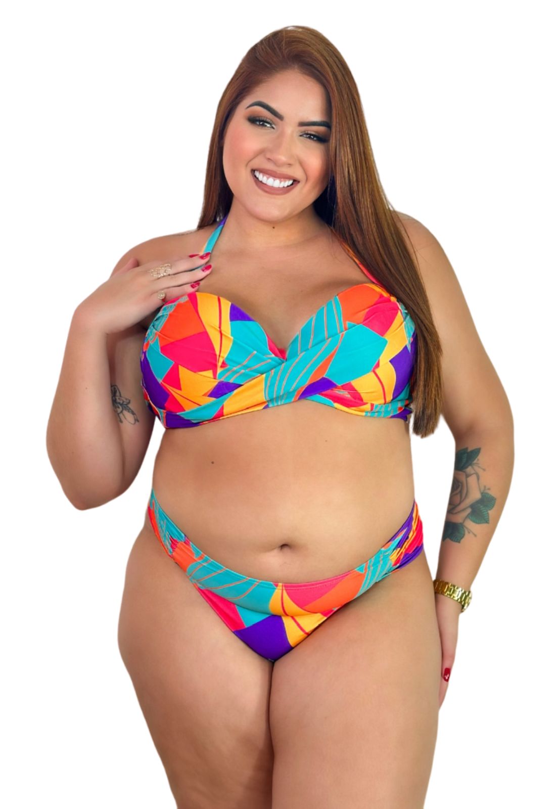 Biquíni Feminino Plus Size Sutiã Trançado Calcinha Bombom