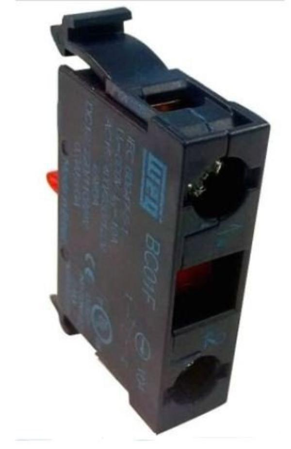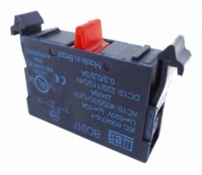 Bloco de Contato BC CSW - WEG 1NF - Bloco de Contato BC CSW - WEG.. BLOCO DE CONTATO..MODELO: CSW.CARACTERÍSTICAS..Comando de Sinalização Linha CSW.A linha de Comando e Sinalização CSW foi cuidadosamente desenvolvida para atender às necessidades de controle e comando elétrico e sinalização nas mais variadas aplicações industriais..Todos os itens da linha foram projetados e possuem desempenho em conformidade com as normas IEC 60947-5-1 (CE) e UL 508 (EUA e Canadá), permitindo a sua aplicação em máquinas e painéis elétricos, com destino aos mais exigentes mercados de todo o mundo..Sistema de Montagem Front-Back e os Novos Blocos de Contato.Através de garras de conexão especiais, os blocos de contato podem ser montados de forma sobreposta entre si (montagem front-back). Esta nova forma de montagem possibilita maior flexibilidade na combinação de contatos e redução de itens de estoque, pois elimina a necessidade de utilização de blocos de contatos duplos..Para a montagem sobreposta de blocos de contato deve-se utilizar a flange AF3F ou AF5F. Os novos blocos de contato que permitem montagem sobreposta são facilmente identificados dos blocos tradicionais pelo seu novo formato e pela cor azul. As flanges AF3F e AF5F são facilmente identificadas pela cor azul...Acessórios - Montagem em Flange.Blocos de Contatos Simples.Contatos - 1 NA (F) ou 1NF (F) ou 1NF.Flange Compatível - AF3F/AF5F.OBS: Não compatível com as caixas plásticas PBW...Características Gerais do Produto:.. Aplicação: Comando e sinalização CSW. Potência: Potência dissipada (W): 0.09. Tensão: Tensão de isolação: Até 1000 V. Dimensões (mm) / Peso (g): 30 ou 35(A) x 5 (L) x 20 (C) - Aproximadamente 15gr..Acompanha o produto:.. 1 Bloco de Contato linha CSW..Garantia:.. 3 meses com a loja