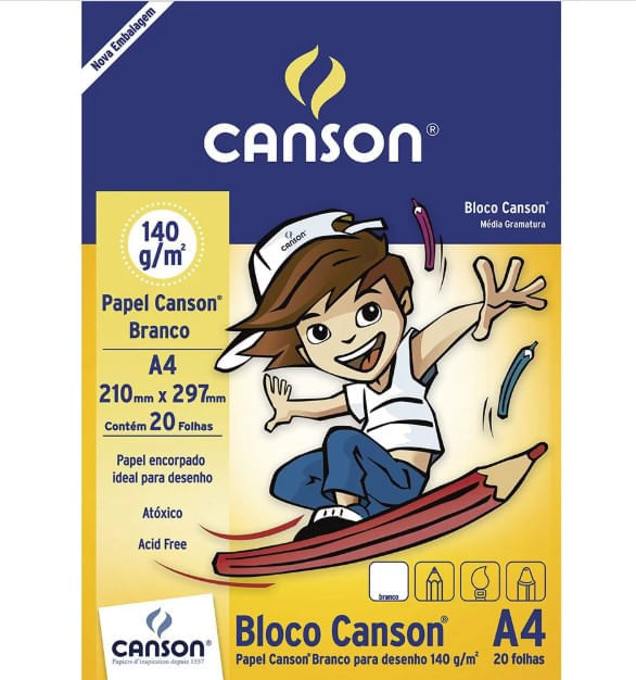 Bloco De Desenho A4 140g/m² Branco 20 Folhas - Canson Canson