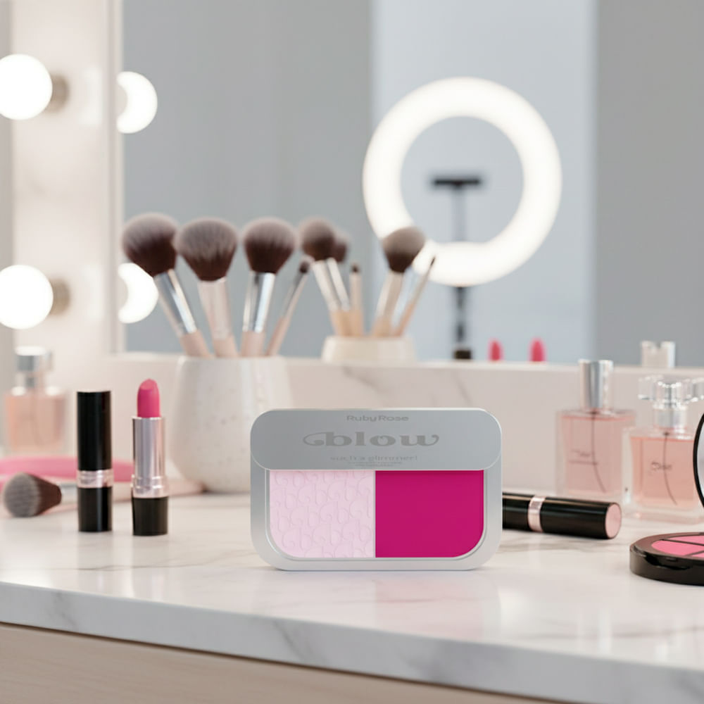 Ruby Rose Blow Whatever Blush Duo Compacto - Duas Tonalidades Em Um Estojo, Acabamento Matte E Cintilante Ruby Rose Blow Whatever Blush Duo: Duas Tonalidades Para Um Efeito Versátil O Ruby Rose Blow W