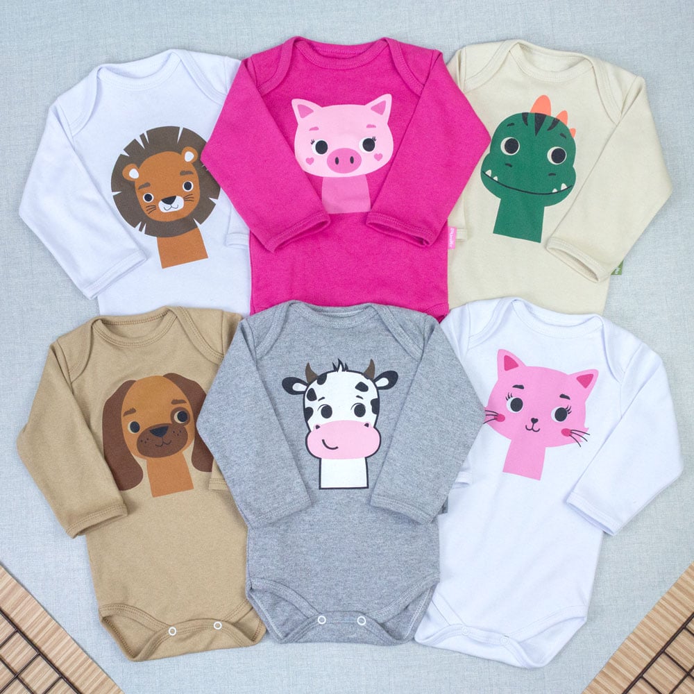 Body Manga Longa Bebê Bichinhos Carinhosos