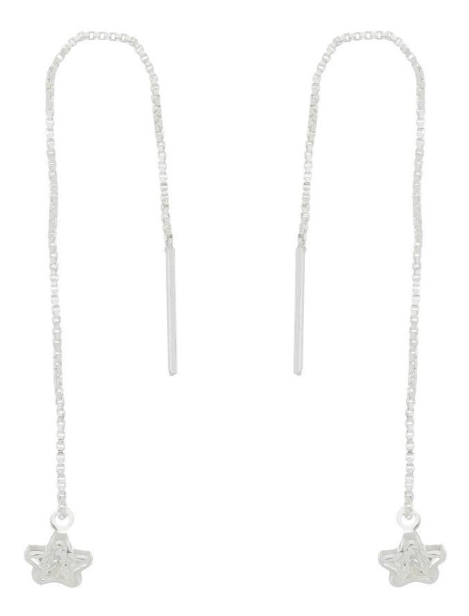 Brinco Corrente Pendurada Estrela Prata 925 Ear50