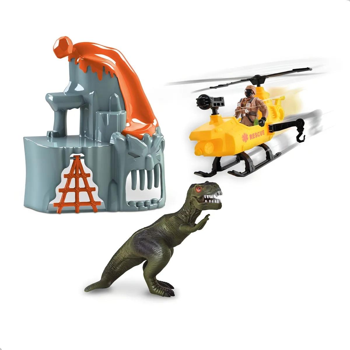 - Brincadeira Interativa: As crianças podem usar o portal como uma entrada para o "parque Jurássico" e utilizar o helicóptero para resgatar personagens ou capturar dinossauros.