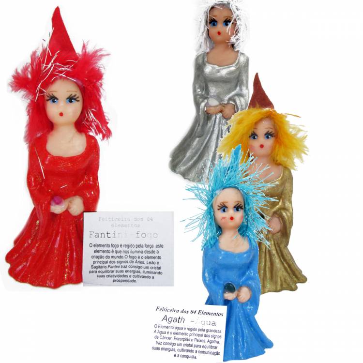 4 Elementos Ar, Fogo, Terra E Água Representador Por Bruxinhas Que Irão Encantar Você.   Fabricação Artesanal Em Resina E Tecido. Imagens Ilustrativas. Pode Ocorrer Pequenas Variações De Cores, Peso E Tamanho.