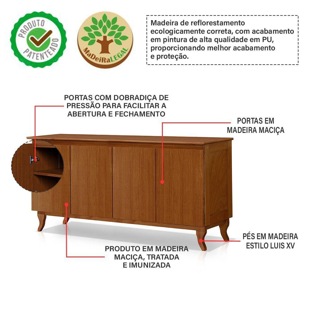 Buffet De Madeira Maciça Aparador Monterrey 4 Portas Castanho