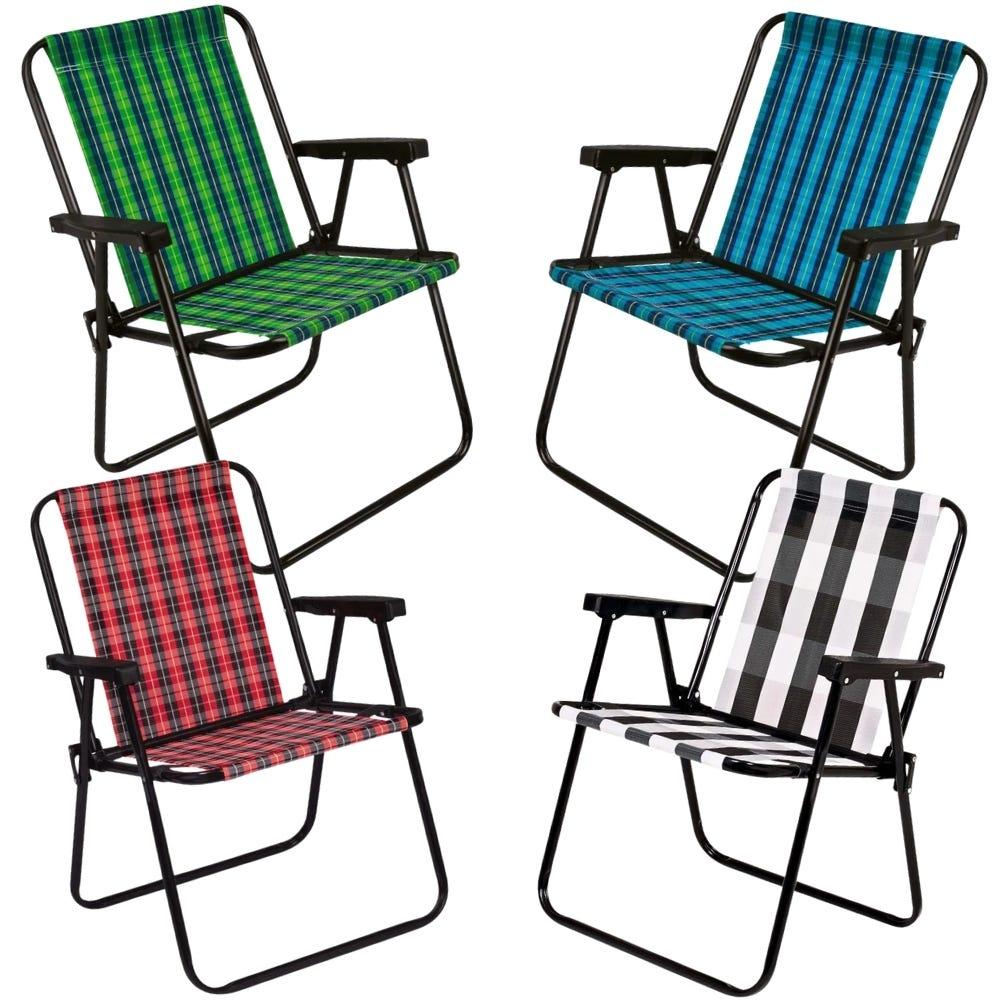 Cadeira De Praia Alta De Aço Pintado Xadrez Mor Preto E Branco