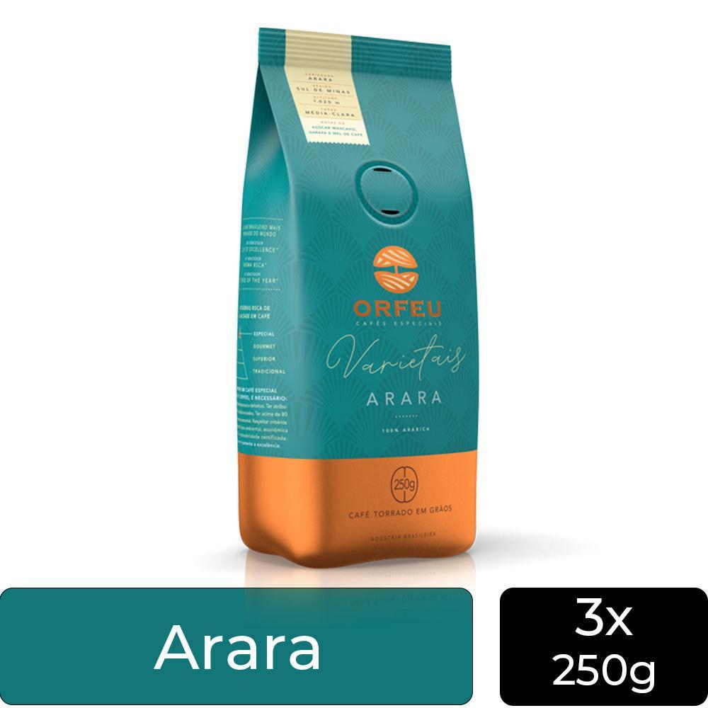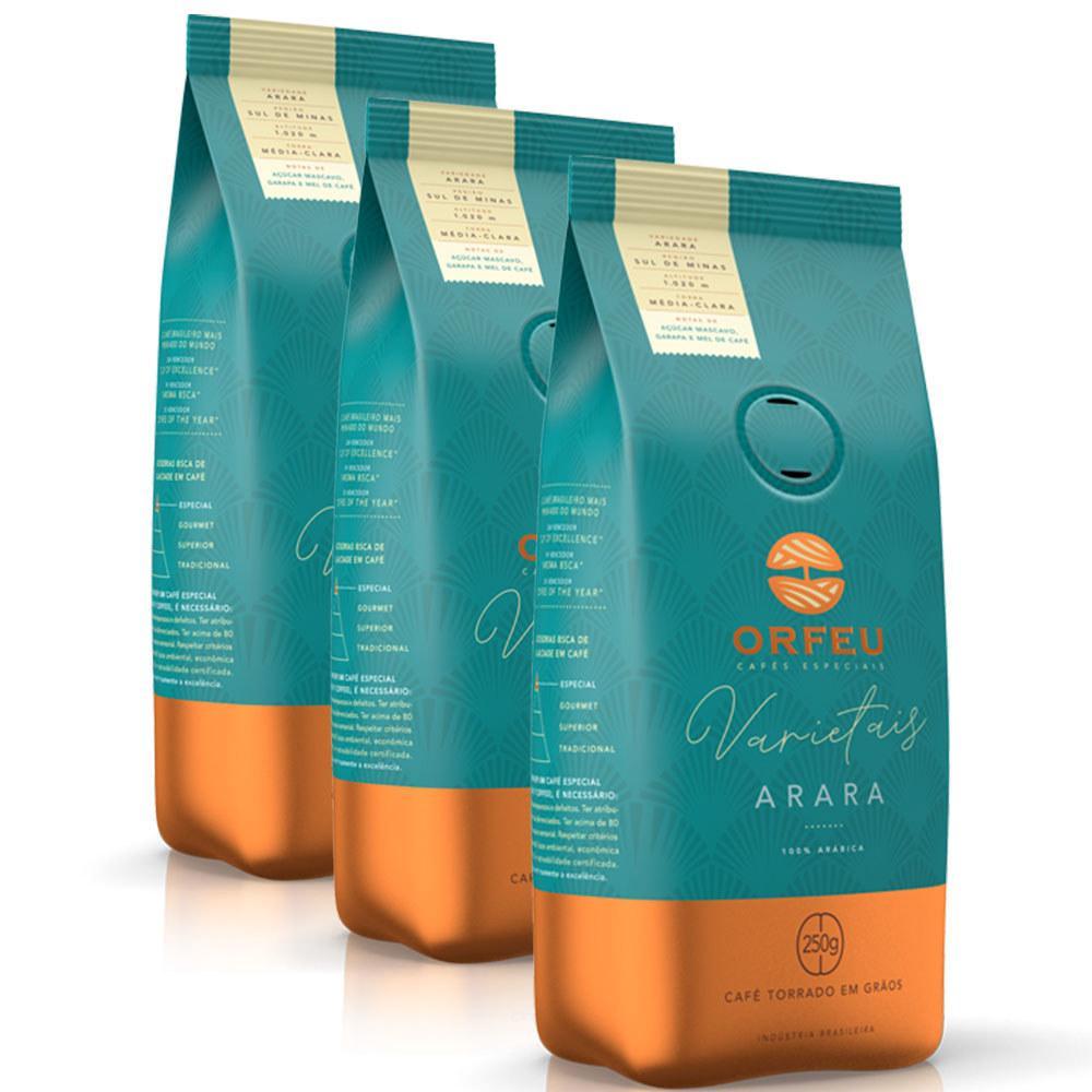 Café Em Grãos Premium Orfeu Arara Kit 3 Pacotes De 250g