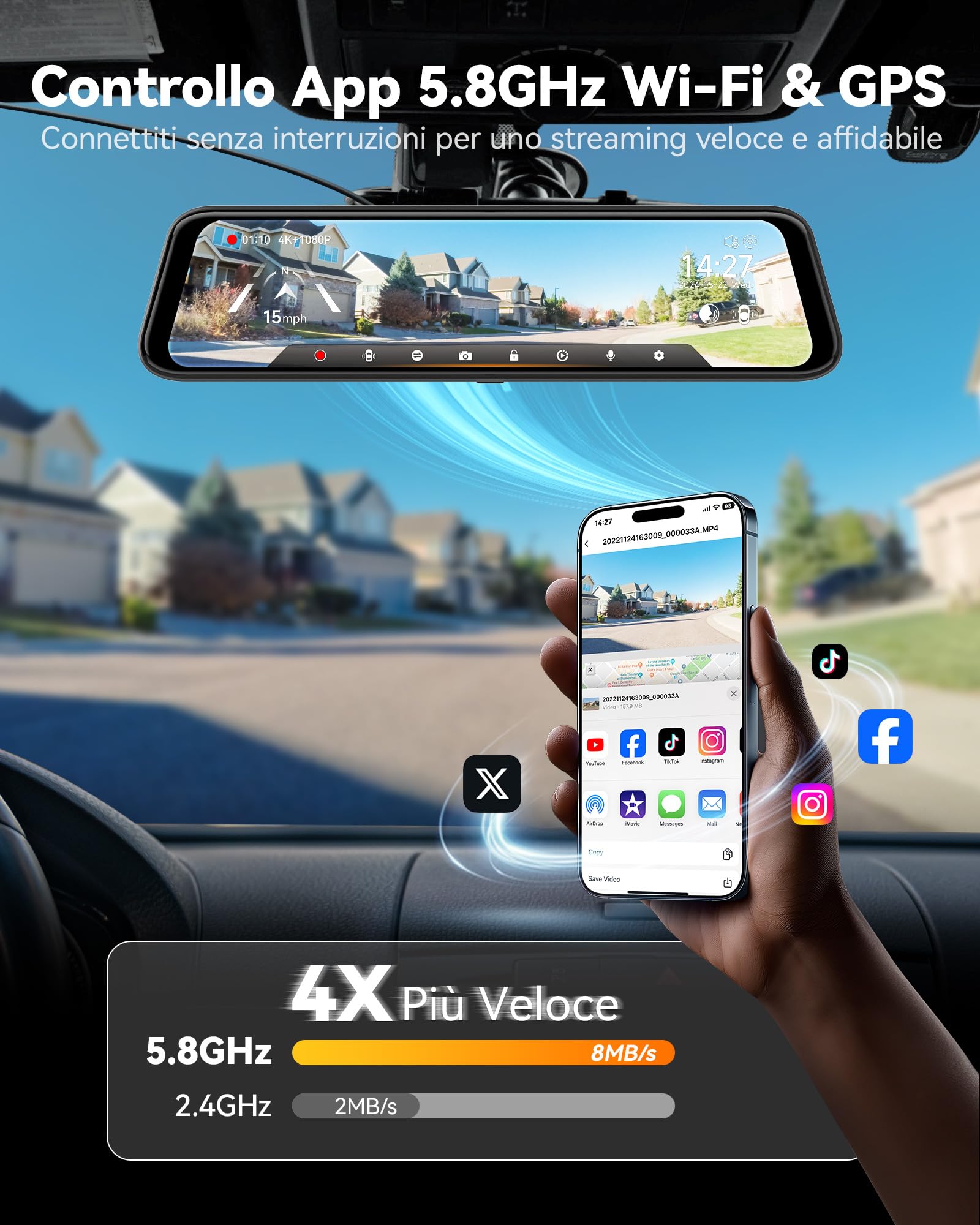 - [conectividade Wifi De 5,8 Ghz] Esta Câmera De Painel Retrovisor Possui Wifi De 5,8 Ghz Atualizado Para Uma Conexão Perfeita. Conecte-se Ao Aplicativo Wolfbox Sem Esforço, Permitindo Que Você Baixe E Compartilhe Vídeos Instantaneamente. Simplifique Seu Gerenciamento De Vídeo E Aproveite O Acesso Sem Esforço Às Suas Filmagens Com Esta Funcionalidade Avançada