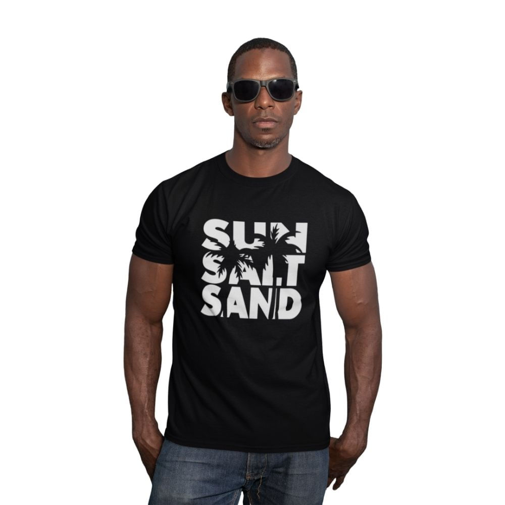 Camiseta Algodao Masculina Tecido Respiravel Macia Estampada Sun Salt Sand Verao Dia A Dia