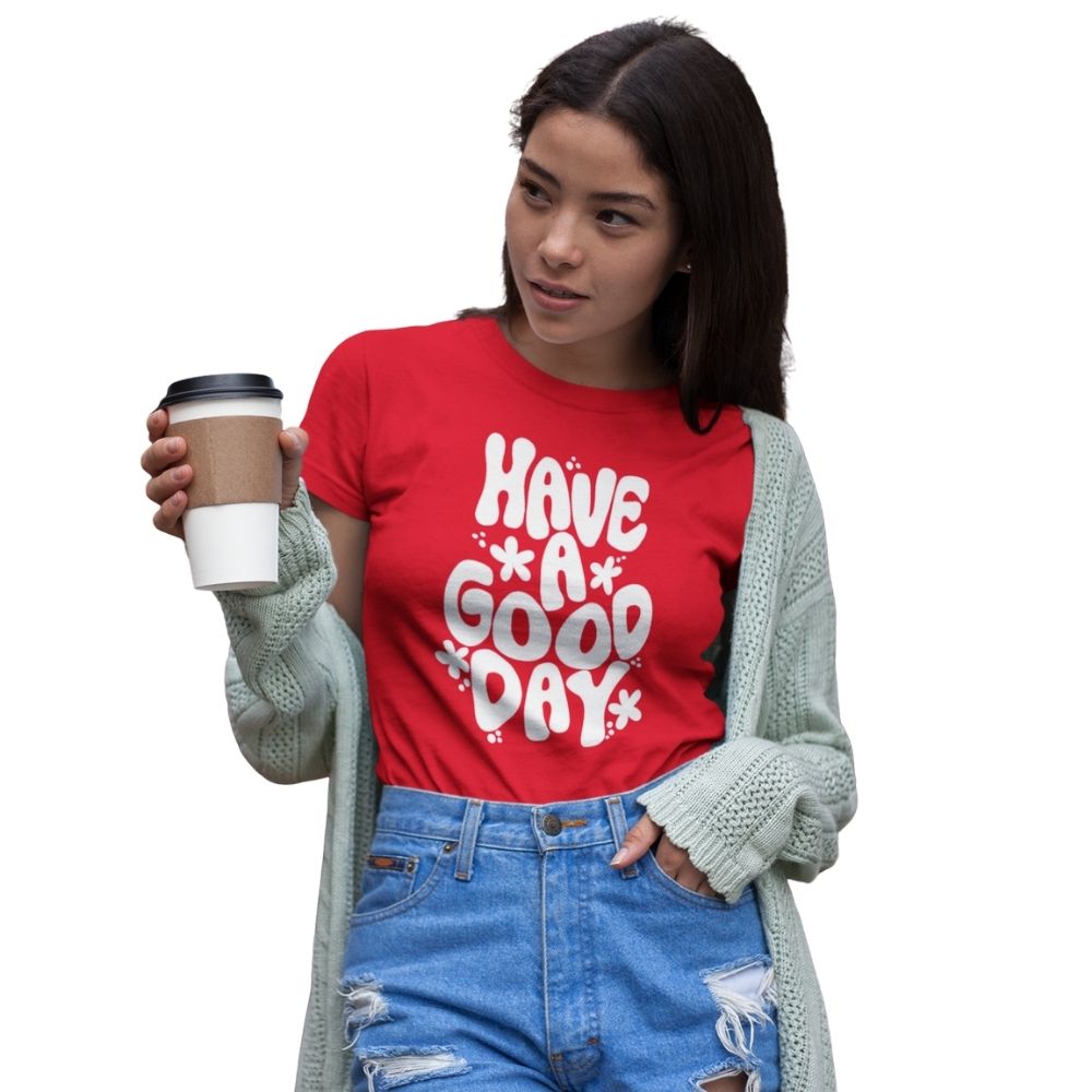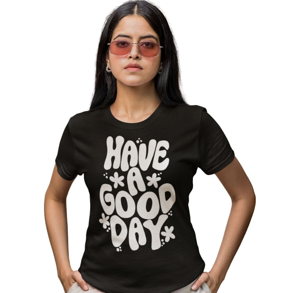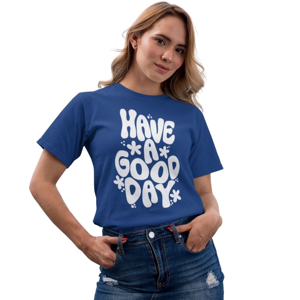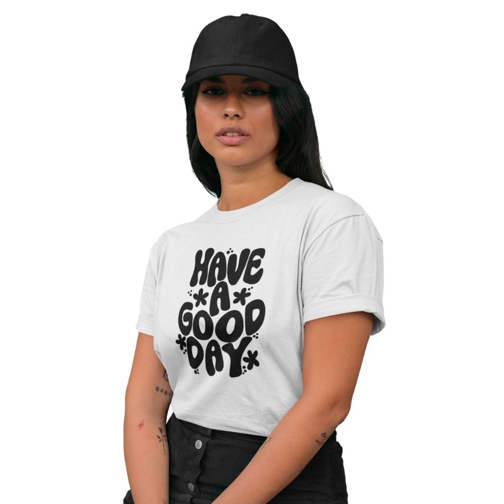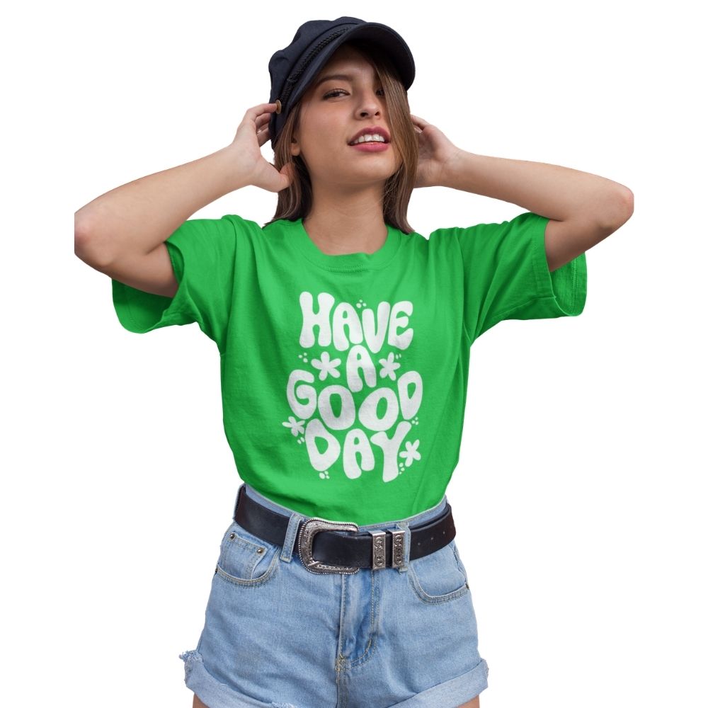 Camiseta Verão Manga Curta Feminina Estampa Have A Good Algodao Macia Confortavel Tecido Respiravel