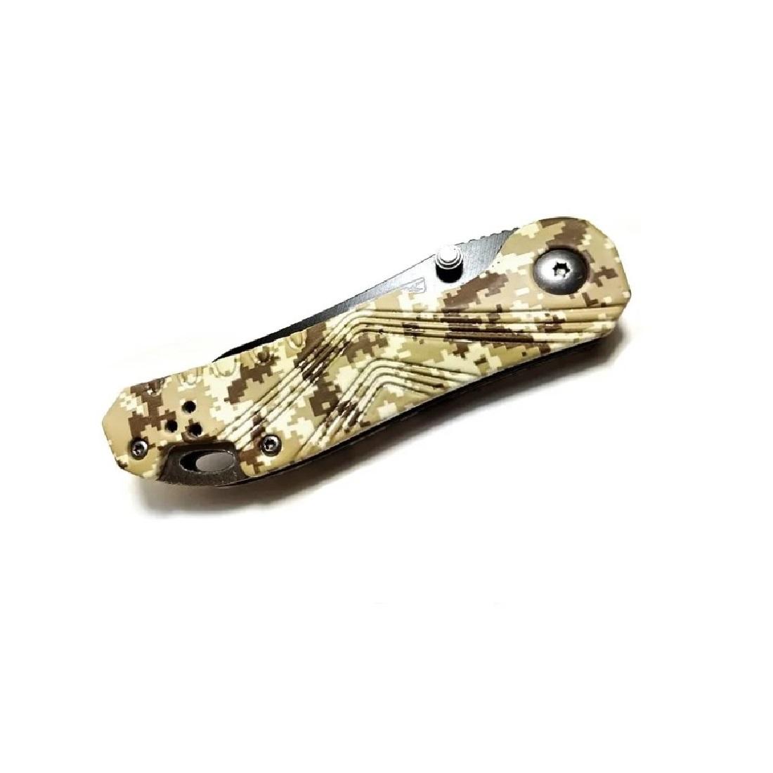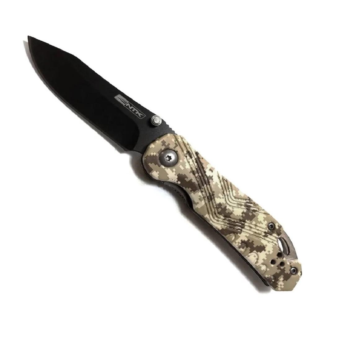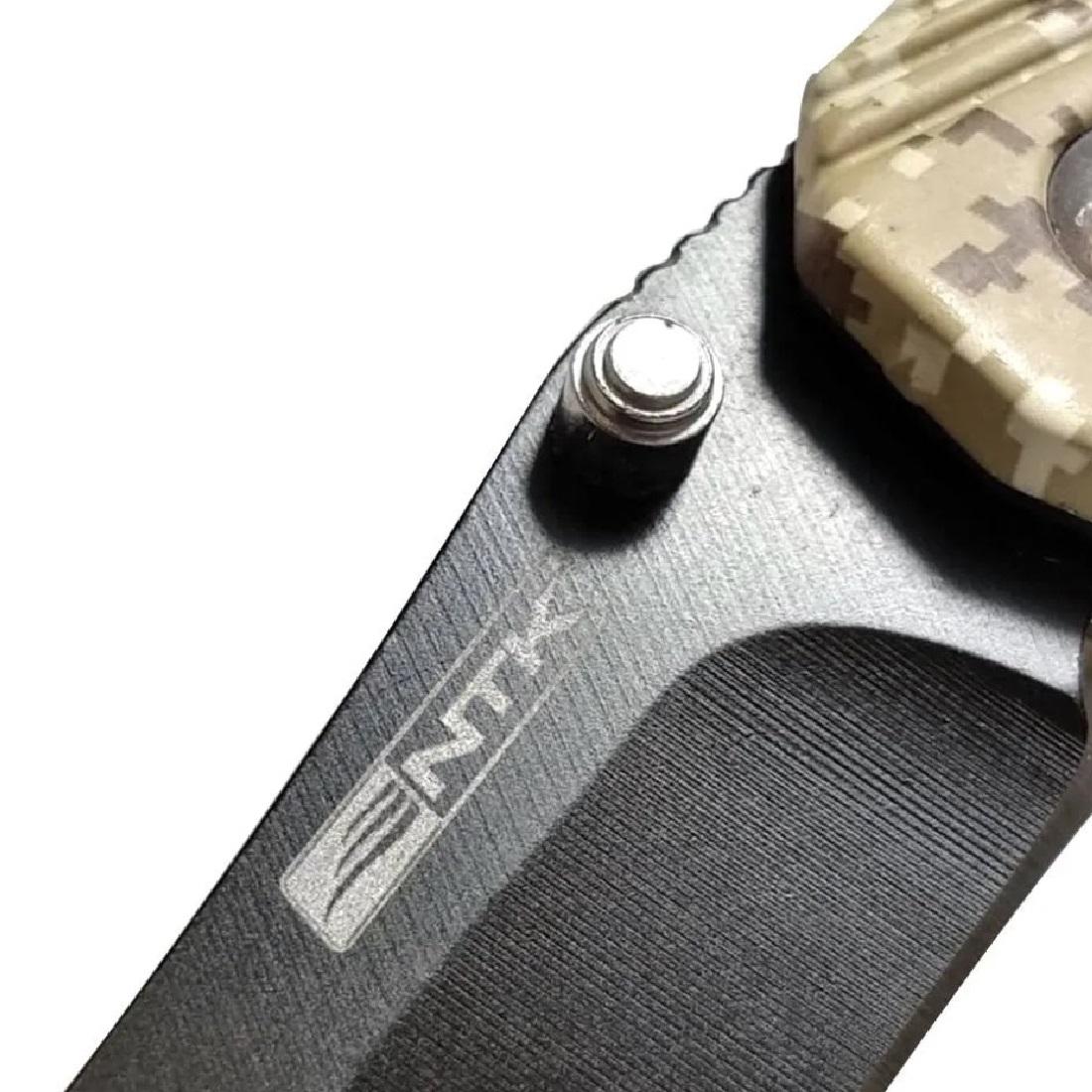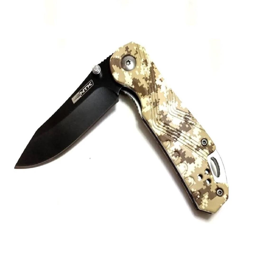 Canivete Snap fabricado pelaNTK Tático com pintura em camufladoCanivete Snap NTK Tático é um elemento que não podefaltar nas suas aventuras, seja em acampamentos, caminhadas na floresta oupesca.Pensando nessa importância, a Nautika Tática desenvolveu o canivete Snap, umincrível canivete para os colecionadores mais exigentes do mercado, feito emlâmina de aço inoxidável e seu corpo feito todo em polímero, com algunsdetalhes e pintura em camuflado, deixa o seu canivete mais elegante.Especificações técnicas: Material: Lâmina de aço inoxidável e cabo de polímero Peso: 80g Medidas: Lâmina 7 cm - Cabo 9,6 cm