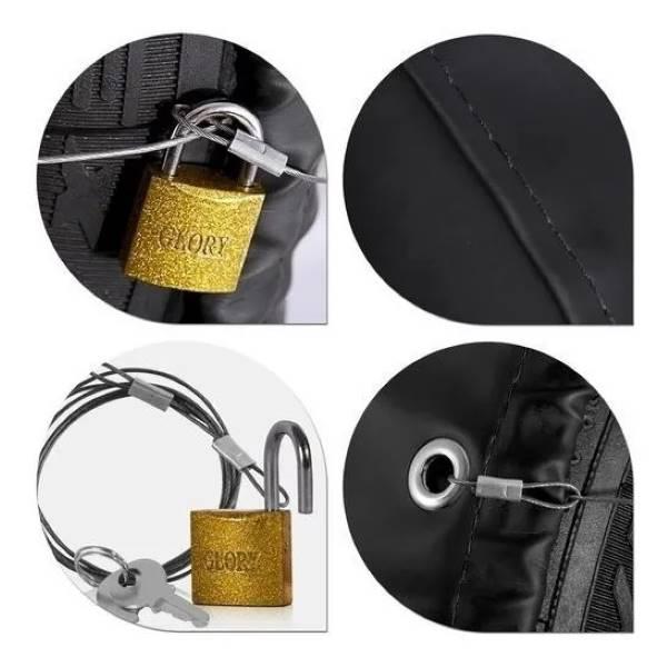 Capa De Estepe Dardo Aro 13 A 16 Polegadas Capa De Estepe Produzida Em Tecido Emborrachado, Com Revestimento Interno Em Poliéster Que Dá Ao Produto Uma Maior Durabilidade E Elasticidade. Conta Com Costuras Duplas, Cinta Elástica Para Um Ajuste Perfeito. Para Proteção Contra Furto, Acompanha Cabo De Aço Plastificado E Cadeado Com 2 Chaves. A Impressão E De Alta Qualidade Com Técnica De Impressão Em Alta Definição. A Frente Possui Acabamento Brilhante, O Que Proporciona Aspecto Muito Mais Agradável Em Relação As Impressões Tradicionais. Para Rodas De Aro 13 A 16 Polegadas. Não Compatível Com Pneus De Pajero Compatível Com Os Modelos: Aircross 2010/.. (pneu 205/60/aro 16) Crossfox 2005/.. (pneu 205/60/aro 15) Ecosport 2003 Até 2012 (pneu 205/65/aro 15) Ecosport Nova 2012/.. (pneu 205/60/aro 16 E 205/65/aro 15) Spin Active 2015/.. (pneu 205/60/aro 16) Material: Tecido Emborrachado. Cadeado Com Duas Chaves Cabo De Aço Peso: 0,500 Gramas 1x Capa De Estepe 1x Cabo De Aço Plastificado. 1x Cadeado Com 2 Chaves.