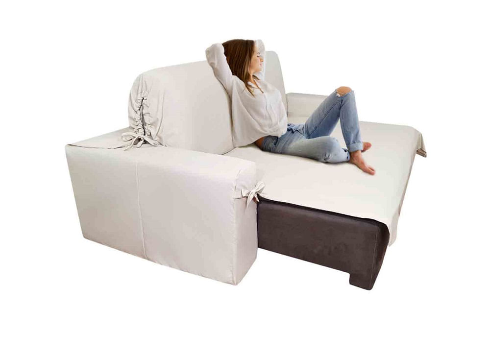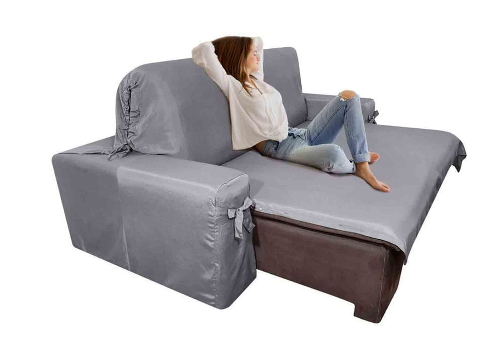Capa Pra Sofá Retrátil E Reclinável De Até 2,65m Em Gorgurão Com Laços Ajustáveis