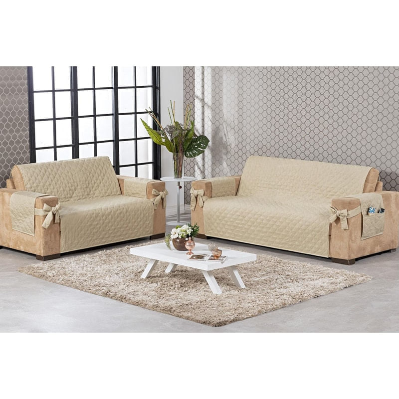 Capa Protetora De Sofá 2 E 3 Lugares Com Laço Cáqui